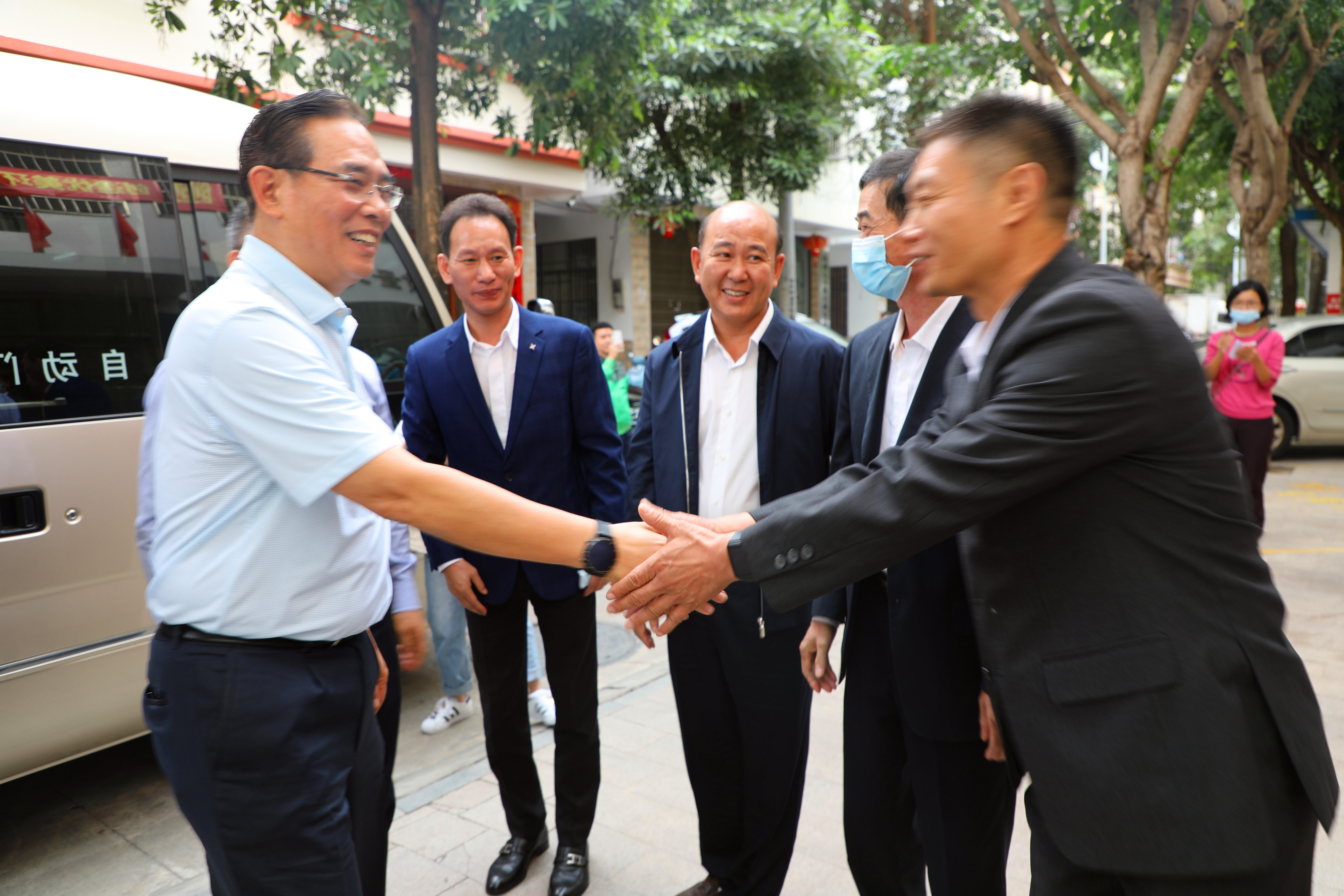 董事長(zhǎng)陳明、總裁陳云及工會(huì)主席高斐斐在集團(tuán)門前迎接蔡副主席的到來。