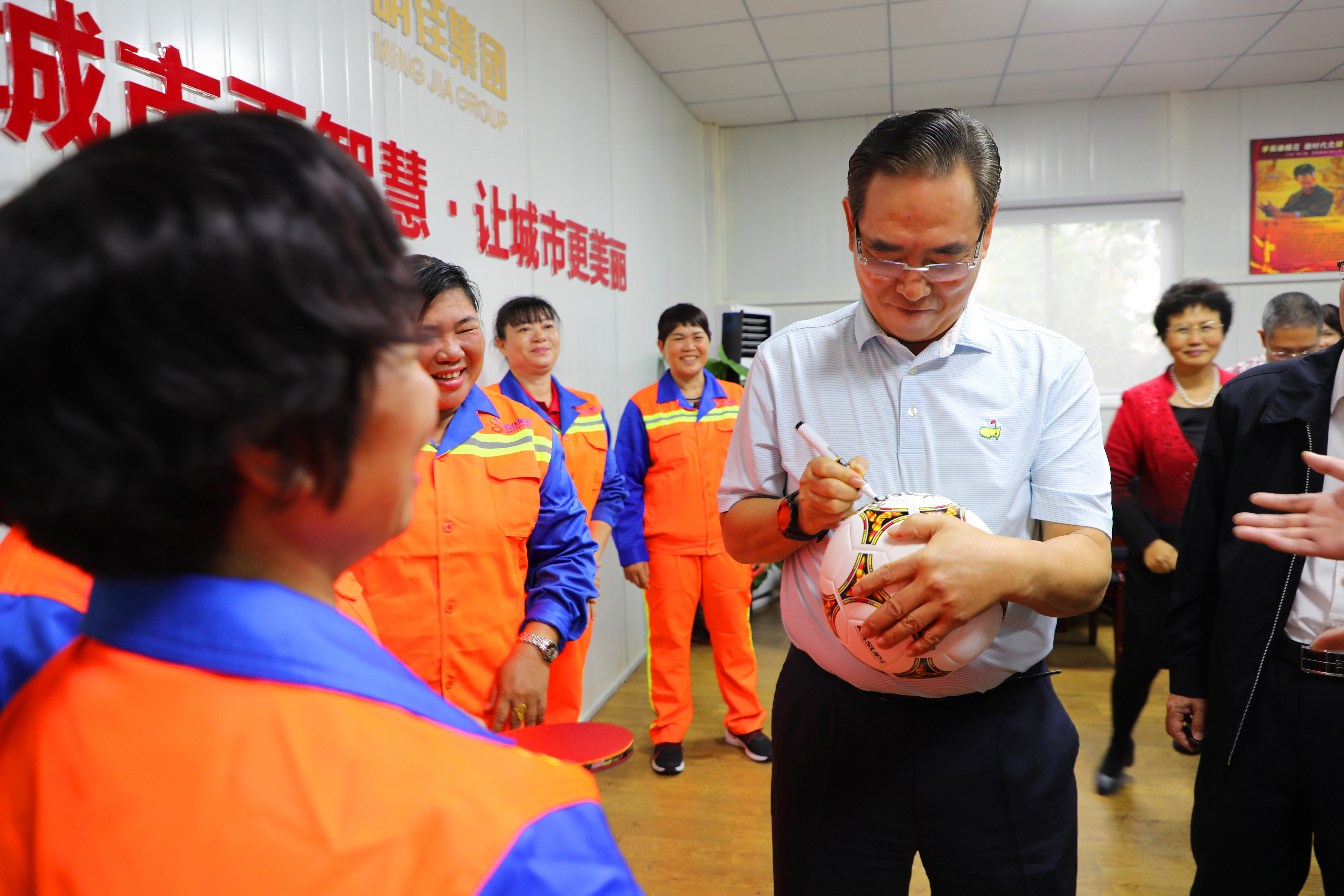 他肯定了明佳集團(tuán)工會(huì)取得的成績(jī),并親切慰問了現(xiàn)場(chǎng)的環(huán)衛(wèi)工人,與他們一一握手,并合影留念。