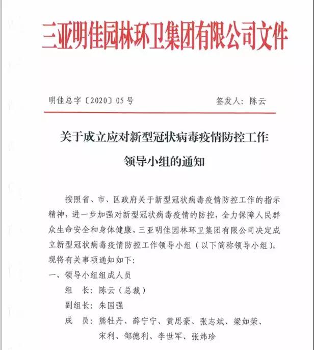 三亞明佳園林環(huán)衛(wèi)集團(tuán)黨支部先后成立應(yīng)對疫情工作領(lǐng)導(dǎo)小組、黨員疫情防控先鋒隊(duì),并通過編寫《新型冠狀病毒防疫指導(dǎo)手冊》指導(dǎo)支部黨員科學(xué)、有序開展疫情防控工作。同時,組織黨員為一線員工發(fā)放防護(hù)口罩,送去人文關(guān)懷與溫暖,并積極發(fā)揮明佳共青團(tuán)組織作用,將各項(xiàng)防疫措施落到實(shí)處。