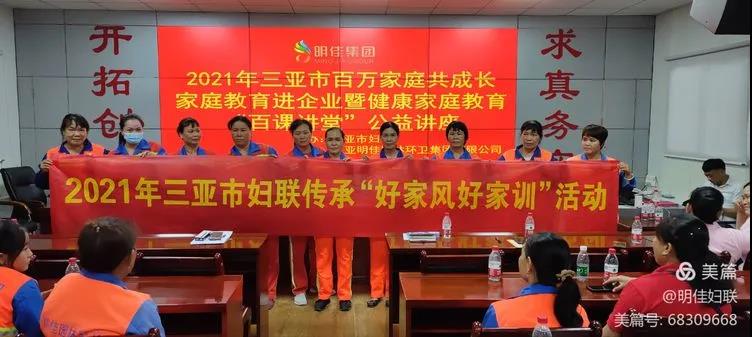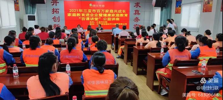為引導(dǎo)廣大婦女帶動家庭成員大力培育新時代家庭觀,推動社會主義核心價值觀落細(xì)落小落實到家庭,切實落實家庭教育立德樹人的根本任務(wù),根據(jù)省婦聯(lián)“家家幸福安康工程”部署,結(jié)合“我為婦女群眾辦實事”實踐活動。2021年7月20日下午15時30分,由市婦聯(lián)主辦、明佳婦聯(lián)協(xié)辦的2021年三亞市百萬家庭共成長家庭教育進(jìn)企業(yè)暨健康家庭教育“百課講堂”公益培訓(xùn)課在明佳三樓會議室成功舉行,培訓(xùn)內(nèi)容為家庭教育知識和女性健康知識,明佳集團(tuán)80余名職工參加了此次培訓(xùn)。