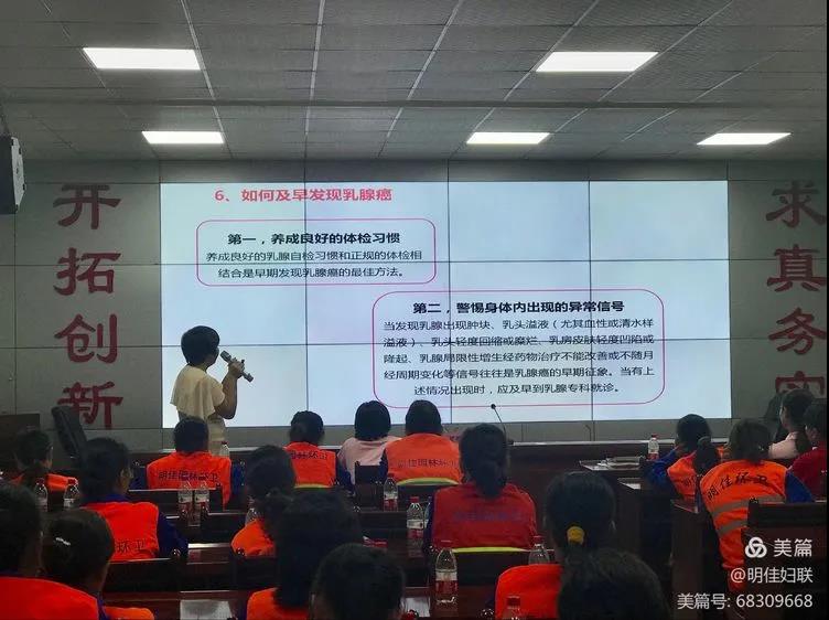 接著,由三亞市衛(wèi)生健康服務(wù)中心羅英媚醫(yī)師講解女性健康知識。課上羅醫(yī)師分別介紹了女性生理知識,如何科學(xué)預(yù)防、及早發(fā)現(xiàn)乳腺癌及宮頸癌,號召大家定期做醫(yī)學(xué)檢查,并隨時自我檢查,做好疾病預(yù)防。